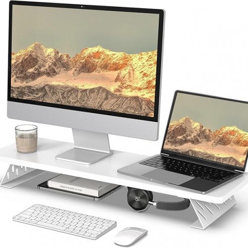FITUEYES Monitor Stand – 2 Tier Computer Monitor Riser Shelf, Wood Desktop Stand for Laptop Computer Screen, Desk Organization, Office Supplies