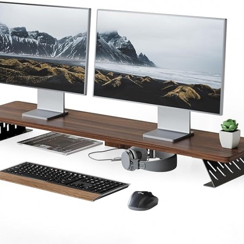 FITUEYES Monitor Stand – 2 Tier Computer Monitor Riser Shelf, Wood Desktop Stand for Laptop Computer Screen, Desk Organization, Office Supplies