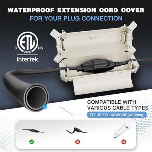 - With the 4 corner clips, snap-lock lid, and rubber gaskets, this outdoor extension cord cover box is IPX4 waterproof. Perfect to seal 14/16/18 gauge cord, braided cable and flat wire.