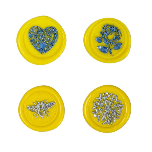 Flower Wax Seal Stamp Set with 4 PCS Removable Brass Heads and 1 Wooden Handle – Retro Heart Rose Bee Flourishing Leaves Sealing Wax Stamp for Cards Invitations