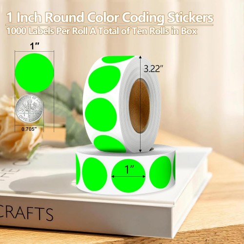 - ✅ 1-Inch Circular Color Coded Label -1000 dots per roll, a total of 10 rolls. The circle color dots are used for organization and long-term use, suitable for high-frequency use scenarios such as warehouses, offices, schools, etc. 1-inch standard round label for handwritten marking, suitable for enterprise procurement, teacher lesson preparation, and home storage