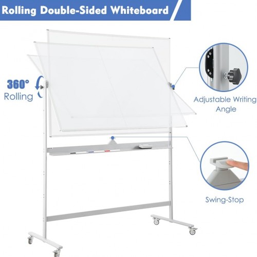 - 【LARGE MOBILE WHITEBOARD】The large double-sided whiteboard offers 72″ x 48″ writing space for displaying your ideas, or making presentations at work. The mobile dry erase board with lockable wheels is ideal for teaching lessons, brainstorming and managing your work presentations, and practical for homeschool, classroom, and office
