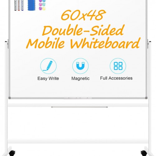 FORTUNO Large Magnetic Mobile Whiteboard 96″x48″, Rolling Double Sided Stand Whiteboard on Wheels, Reversible Adjustable Height/Angle Dry Erase Board 8′ x 4′ Easel White Board for Office Classroom