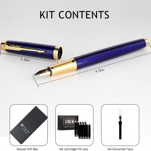 Fountain Pen,luxury pens,Fine point smooth writing pens for journaling fancy pens with Gift Case 10 black ink cartridges an ink converte nice pens writer gifts(Bule)