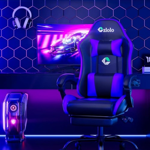 - Ergonomic Blue Gaming Chair: There is a small pillow on the top to protect your neck and avoid soreness. The backrest is widened to accommodate your shoulders, making you more comfortable to lean on. and linkage armrests have added sponge pads, you will feel softer.In addition, there is also a big lumbar support pillow with massager that can vibrate to relieve your fatigue.