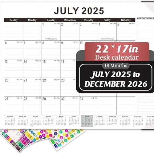 Gannyfer Desk Calendar 2025-2026, Large 18 Monthly Calendar 2025 22″ x 17″, July 2025 – Dec 2026, Academic Desktop Pad Calendar with To-Do List and Notes, Plastic Cover, Thick Paper, for Planning and Organizing(6 Stickers)