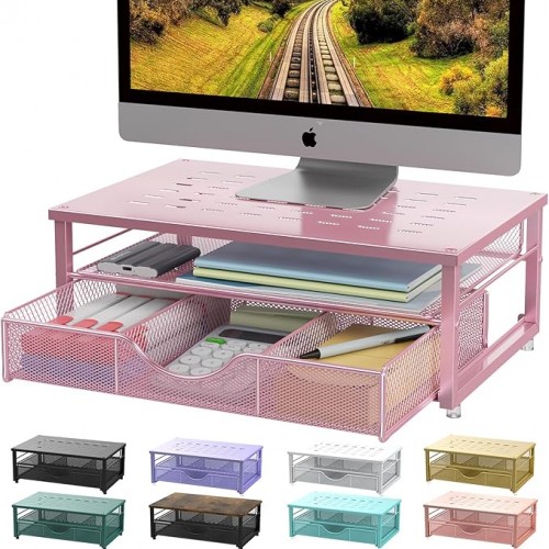 gianotter Computer Monitor Stand Riser, office organizer with Drawer, Office Organizers Storage for Classroom Office Supplies (Purple)