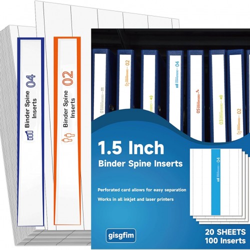 gisgfim 20 Sheets Binder Spine Inserts 3 Inch Spine Width White Binder Labels 92LB Printable Side Identifiers for Inkjet Laser Printers Cardstock View Binders Labels 3 Inserts/Sheet