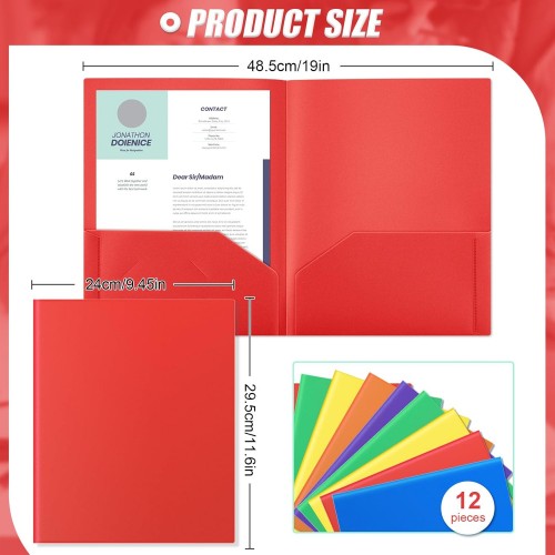 - Packaging Information: you will receive 12 pieces of plastic folders in 6 colors, each folder is designed with 2 pockets; The folders with pockets measure about 11.6 x 9.45 inches/ 29.5 x 24 cm, suitable for letter size paper, providing some space for you to store and display important files, and the design makes it easy to carry around