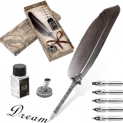 Gullor Wooden Dip Pen Calligraphy Set with Black Ink & 6 Nibs for Beginners, Kids, Writing, Signatures and Drawing, Gold