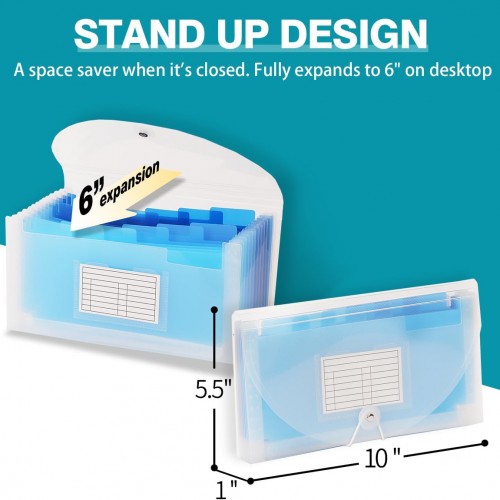 H4D Check Size 13 Pocket Expanding File Folder, Accordion File Organizer Wallet Case for Coupon Receipt Storage, 10 x 5.5 inches, Blue