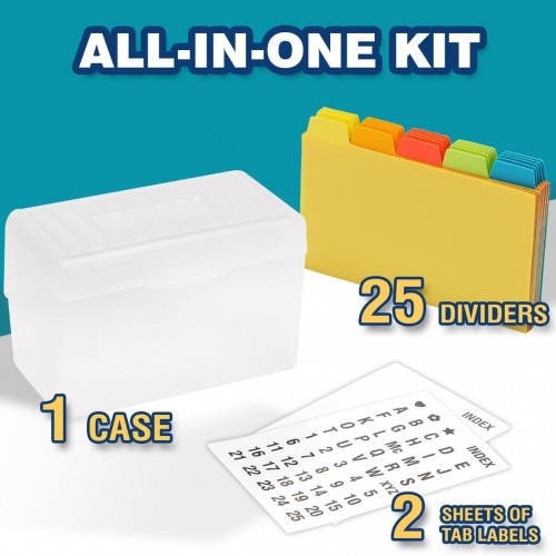 H4D Index Card Holder 3×5 Inches with 25 Plastic Dividers, Clear
