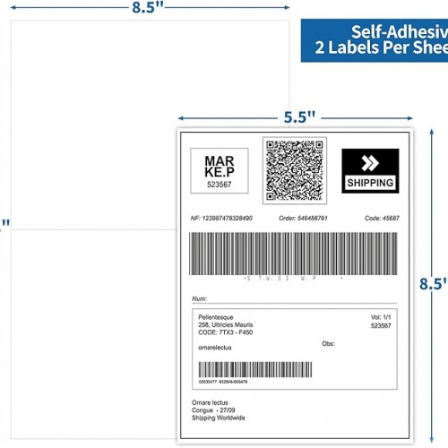 - 💎SPECIFICATIONS: Label size 8 1/2” x 5 1/2”. Sheet size 8.5” x 11” Standard paper size. 2 Labels per sheet. Total 50 labels 25 sheets. Blank shipping mailing label with MATTE finish.