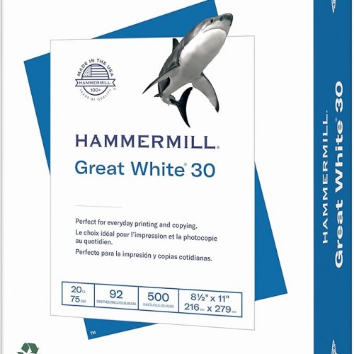 - HAMMERMILL PRINTER PAPER – Hammermill Great White 8.5” x 11” 3-hole punch printer and copying paper works as hard as you do. This dependable, everyday copy paper runs efficiently through all equipment and has a distinct contrast for easy readability.