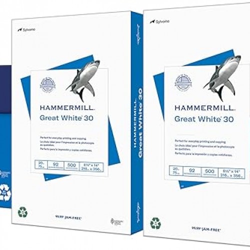 - 30% RECYCLED PAPER – Hammermill Great White recycled printer paper is made from post-consumer fiber. It is versatile paper with precise, accurate sheeting, consistent moisture content and curl control to ensure smooth, trouble-free performance.