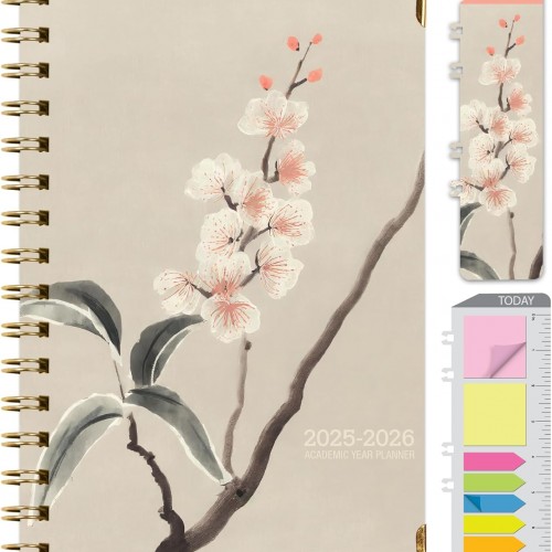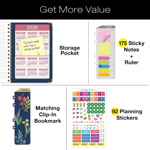 HARDCOVER Academic Year 2025-2026 Planner: (June 2025 Through July 2026) 5.5″x8″ Daily Weekly Monthly Planner Yearly Agenda. Bookmark, Pocket Folder and Sticky Note Set (Navy Gold Numbers)