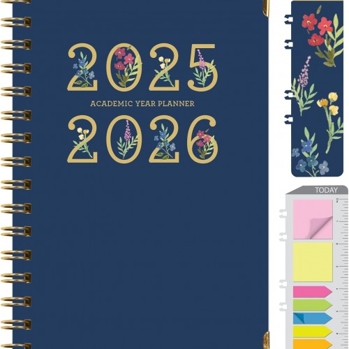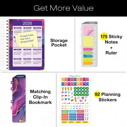 HARDCOVER Academic Year 2025-2026 Planner: (June 2025 Through July 2026) 5.5″x8″ Daily Weekly Monthly Planner Yearly Agenda. Bookmark, Pocket Folder and Sticky Note Set (Pink Purple Marble)