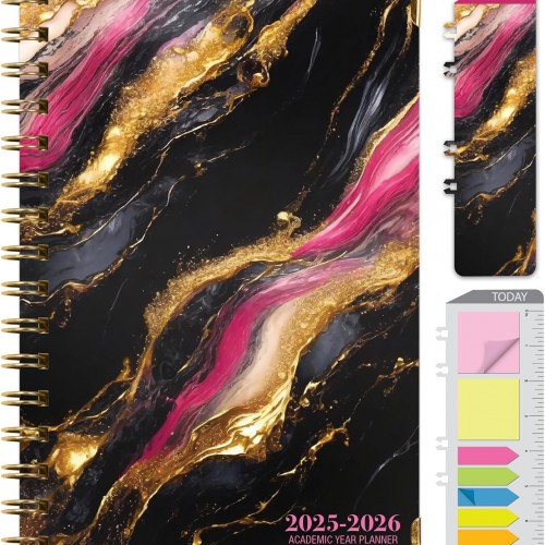 HARDCOVER Academic Year 2025-2026 Planner: (June 2025 Through July 2026) 8.5″x11″ Daily Weekly Monthly Planner Yearly Agenda. Bookmark, Pocket Folder and Sticky Note Set (Pink Purple Marble)