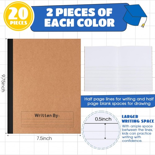 Henoyso 20 Pcs Primary Composition Notebook 9 3/4 x 7 1/2 Inch Kids Journal, Back to School Supplies, K-2 Primary Writing Notebook for Kids Student Draw and Write Story Journal (Black Color)