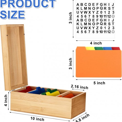 Henoyso 3 x 5 Inches Index Card Holder Set, Bamboo Recipe Box Organizer Index Cards Organizer, 50 Pcs Dividers 2 Sheets Alphabet Number Stickers File Note Holders for Office Business Home Kitchen