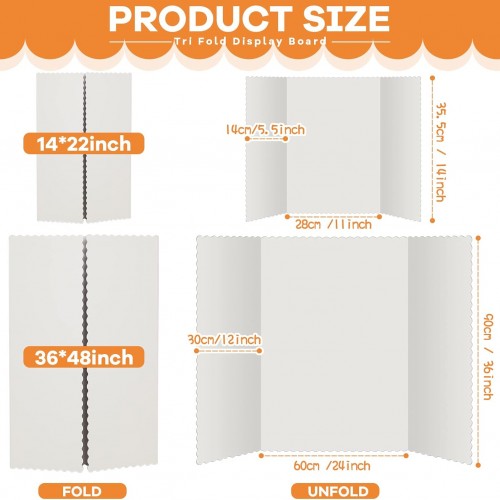 Henoyso 8 Pieces Tri Fold Poster Board Lightweight Fold Presentation Board for Science Fair Display(14 x 22 Inch,White)