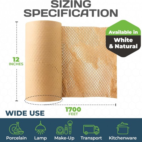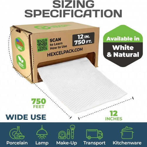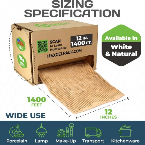 - EASY TO USE – The self-dispensing box makes this honeycomb packing paper easy to use. It is an efficient packing material for dishes, glassware, and other delicate items before shipping or moving. It’s available in white or natural to match your brand’s aesthetic. It’s available in white or natural to match your brand’s aesthetic.