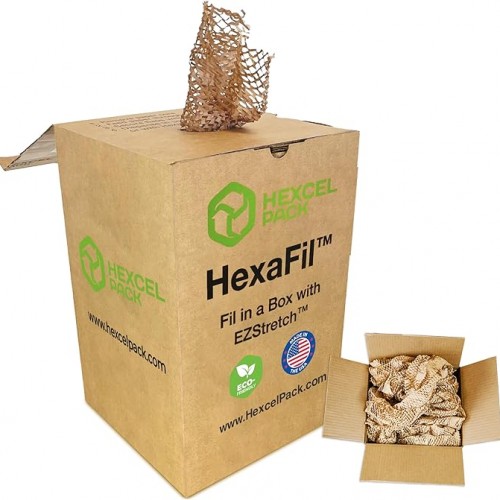 - PACKING PROTECTION – Utilizing the same slit sheet technology as HexcelWrap, HexaFil dispenses in a spiral from its center, creating a bulky void fill that will never flatten out and delivers the ultimate cushioning solution. Because HexaFil and HexcelWrap share the same hexagonal design, they naturally interlock with each other when used in the same pack, ensuring that the items will nestle together in a stable & locked position.