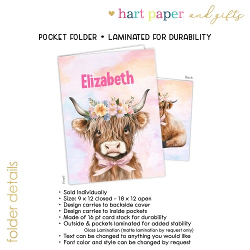 Add a personal touch to your organization with our custom 2 pocket folder, featuring your name, initials, or monogram. Whether you’re at school, home, or the office, this personalized folder is a stylish and practical way to keep papers, assignments, and important documents neatly organized and easy to find.