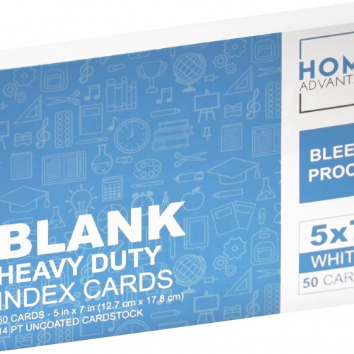 Home Advantage 3.5×5 Blank Index Cards – 50 Pack of Heavy Duty Bleed Proof Note Cards & Flashcards