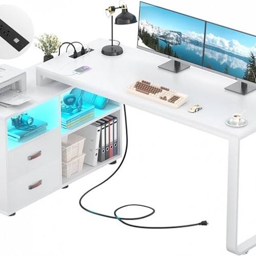 Home Printer Stand for Desk, Desktop Printer Table with Storage Drawer and Side Book Stand, 2-Tier Printer Shelf, Desk Organizer for Home Office, Rustic Brown and Black PTHR3001