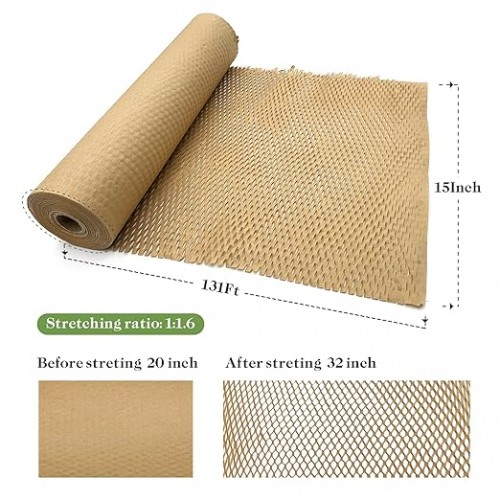 - Recyclable: This honeycomb paper roll is degradable and recyclable. It is a substitute for other filling materials such as plastic bubble bags. After stretching, the honeycomb structure can increase the cushioning performance and effectively protect the items that need to be wrapped.