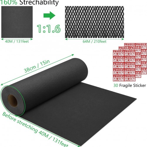 - Save space :The size of the honeycomb paper roll before stretching is 38cm/15″ wide and 40m/131′. The stretched honeycomb paper roll is 64m (1:1.6) long, which is easy to carry and saves storage space and transportation costs.