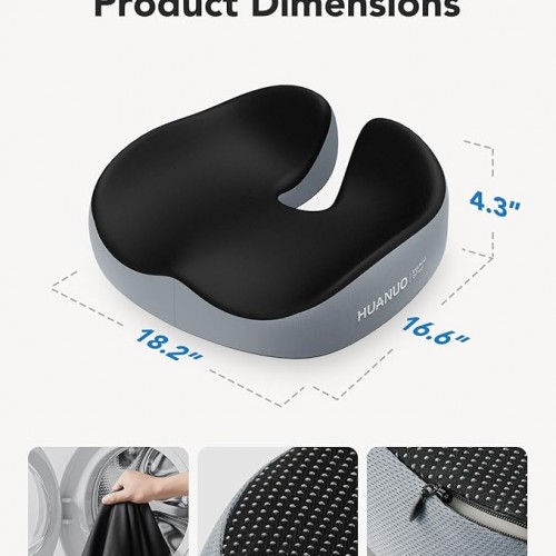 HUANUO Seat Cushion for Office Chairs, Extra Large Desk Chair Cushion for Back Pain Tailbone Pain Relief, Ergonomic Memory Foam Car Seat Cushion, Wheelchair Cushions for Long Sitting, Anti-Slip Bottom
