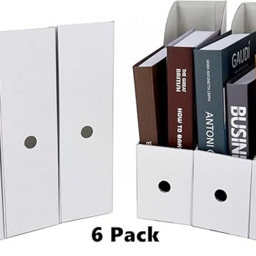HUAPRINT White Magazine Holder(6 Pack) Cardboard Magazine File Holder-Folder Holder,Magazine Organizer,Document Organizer,Magazine Storage Box,With Labels