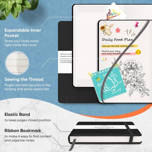 - Great Choice: The notebook pack contains five notebooks, each featuring an elastic closure, a ribbon bookmark for quick reference, and an expandable pocket to keep business cards, notes, receipts etc. It is a thoughtful gifts for friends and family. We will offer you not only high quality products but also our quick response service.