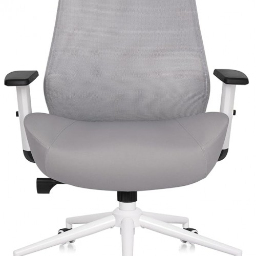 HULALA HOME Modern Faux Leather Home Office Chair with Tilt Lock & Metal Base, Desk Chair with Wheels & Padded Cushion, 360° Swivel Wide Seat Computer Task Chair, White