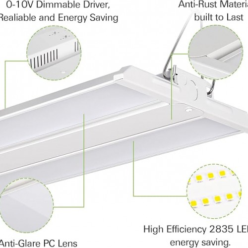 - ๐ก๐ก๐กใ๐๐ฉ ๐ญ๐จ ๐๐% ๐๐ง๐๐ซ๐ ๐ฒ ๐๐๐ฏ๐ข๐ง๐ ๐ฌใ The LED linear high bay light emits an extreme 31,250 Lumens of premium LEDs with 5000K Daylight color temperature using only 250W of electricity. This fixture is a great replacement for those energy-consuming 750-Watt Metal Halide or 8 Lamp T8 high bays. With 0%-100% dimming capacity (Dimmer Not Included), providing a high efficient and uniform lighting, no UV or IR radiation, no hum, up to 80% energy saving.