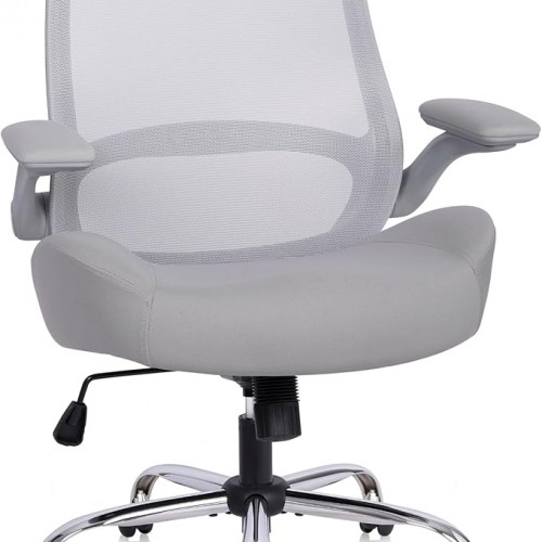 HYLONE Office Chair, 5″ Thickened Seat Ergonomic Desk Chair with Adjustable Armrests, Home Office Computer Chairs for Long Hours Mesh Executive Chair(White Base&Grey)