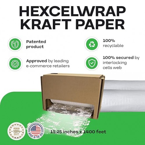 IDL Packaging Original HexcelWrap Honeycomb Packing Kraft Paper 15.25″ x 1400′ Roll in Self-Dispensed Box, White – The First Patented Interlocking Slit Paper Design for Shipping