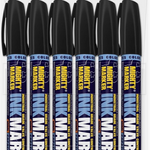 IM-27 Ink Marker, 2.3mm Medium Tip, Alcohol-Based Quick-Dry Permanent Ink, Waterproof, Safe for Most Surfaces, Clip Cap, 6 Bonus Tips, Valve Action, 10ml, 6 Pack (Black)