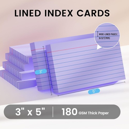 - GOOD VALUE: The purple lined index cards have 6 packs (50 cards per pack, totaling 300 cards). The note cards paper is made of thick premium paper, with a size of 3×5. It is convenient to carry and can be easily put in a pocket.