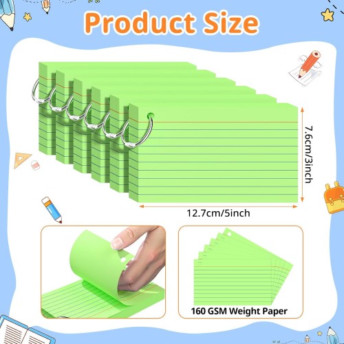 - 【Package included】You will get 300PCS green index cards with 6 rings, including 6 pack, 50 pieces of each pack. Adequate quantity and diverse colors to meet your daily study and work needs.