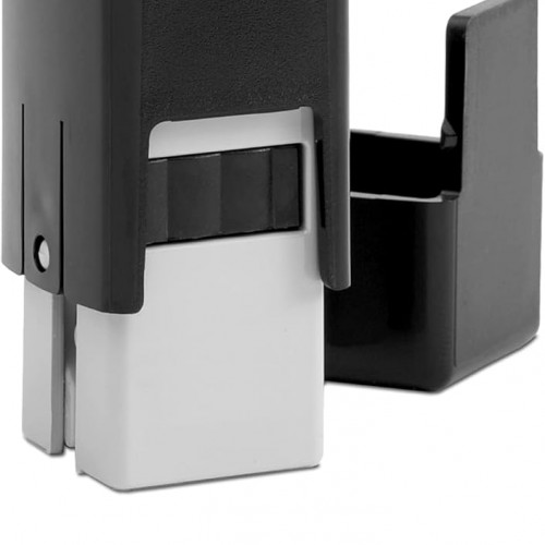- Customizable rectangular rubber stamp impression area – 1/2″ x 1-1/2″ – up to 22 characters per line