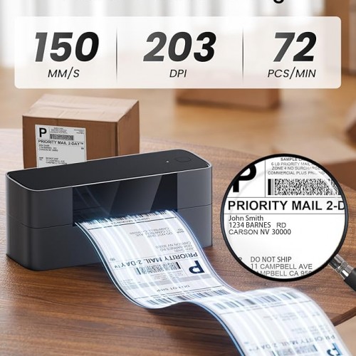 - Fast and Clear Printer for Small Business: The Itari 4×6 label printer uses advanced thermal direct printing technology, eliminating the expense of toner or ink. With a print speed of 150 mm/s, it can produce up to 72 sheets of 4×6 labels per minute. The 203 DPI resolution ensures high clarity and precision in your prints. This thermal printer is a time and money-saving solution for all your labeling needs.