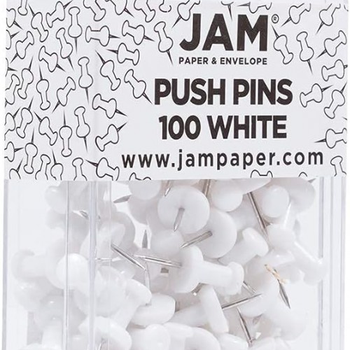JAM PAPER Colorful Push Pins – White PushPins – 100/Pack