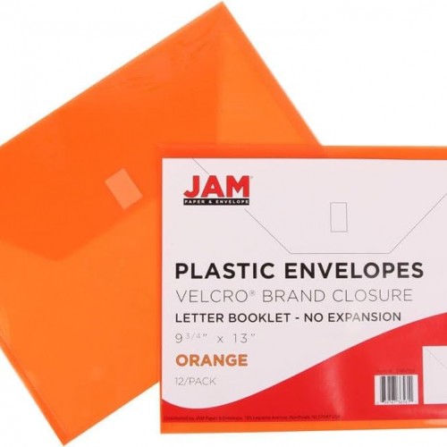 JAM PAPER Plastic Envelopes with Hook & Loop Closure – Letter Booklet – 9 3/4 x 13 – Orange – 3/Pack