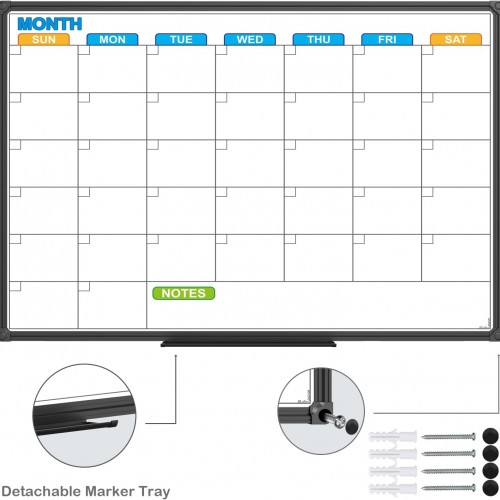 JILoffice Dry Erase Calendar Whiteboard – Magnetic White Board Calendar Monthly 24 X 18 Inch, Black Aluminium Frame Wall Mounted Board for Office Home and School