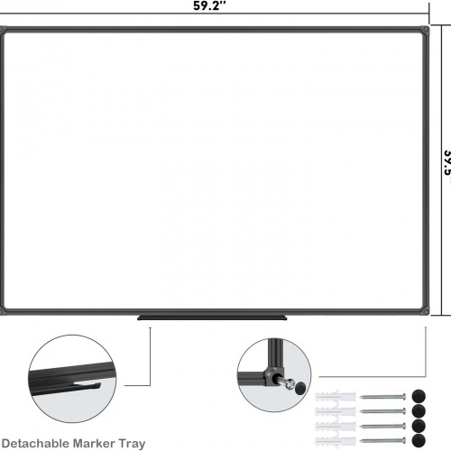 - ELEGANT AND STURDY BLACK ALUMINUM FRAME: Anti-Scratch satin black aluminum frame & detachable marker tray, Round nylon corners, Sturdy whiteboard structure perfect organizer for school home and office.