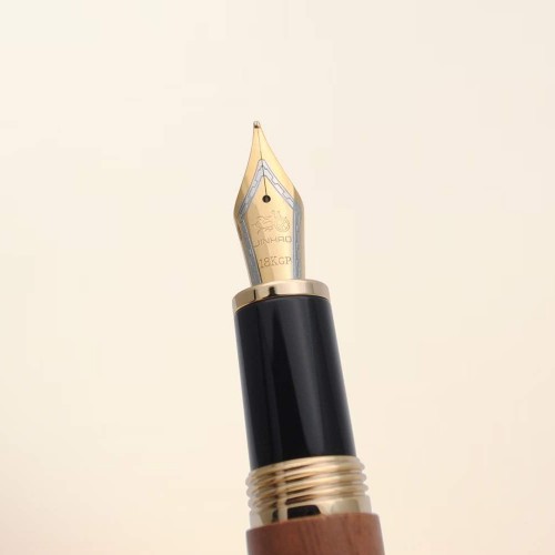 - Nib: F/M (steel nib); Length:143.5mm; Diameter:17.5mm; Net weight:34.5g; Material: wooden pen barrel