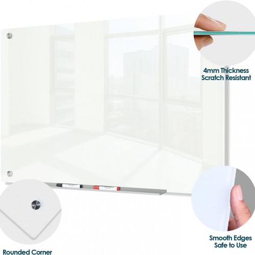 - 【ENVIRONMENTAL & LONG-LASTING】: The strong durable tempered glass surface resists stain and ghosting. Designed with 4mm thickness, rounded corner, and smooth edges. Cleaner, safer, and longer-lasting than traditional whiteboards.